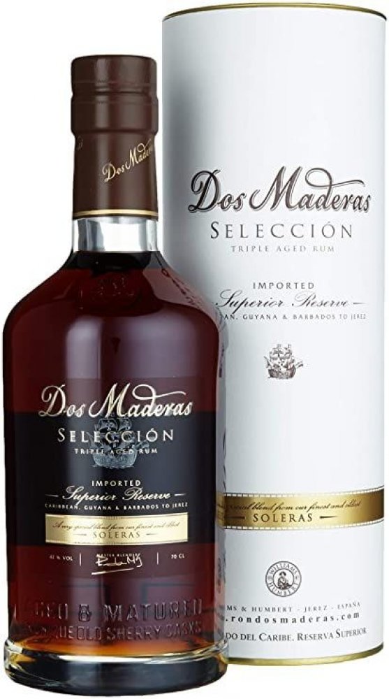 Díky tomu se vám nejprve na patře rozvine suchá chuť 10tiletého karibského rumu, která pozvolna přechází v jemné sladké tóny po sherry Pedro Ximénez. Vyšší obsah alkoholu 42% podtrhuje rumový charakter Dos Maderas Selección, který si i přesto v závěru zachovává plnou a harmonickou chuť.