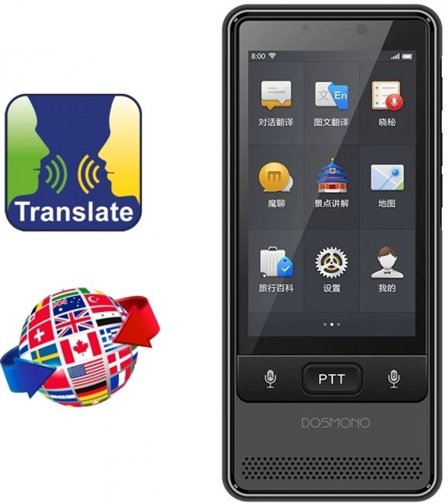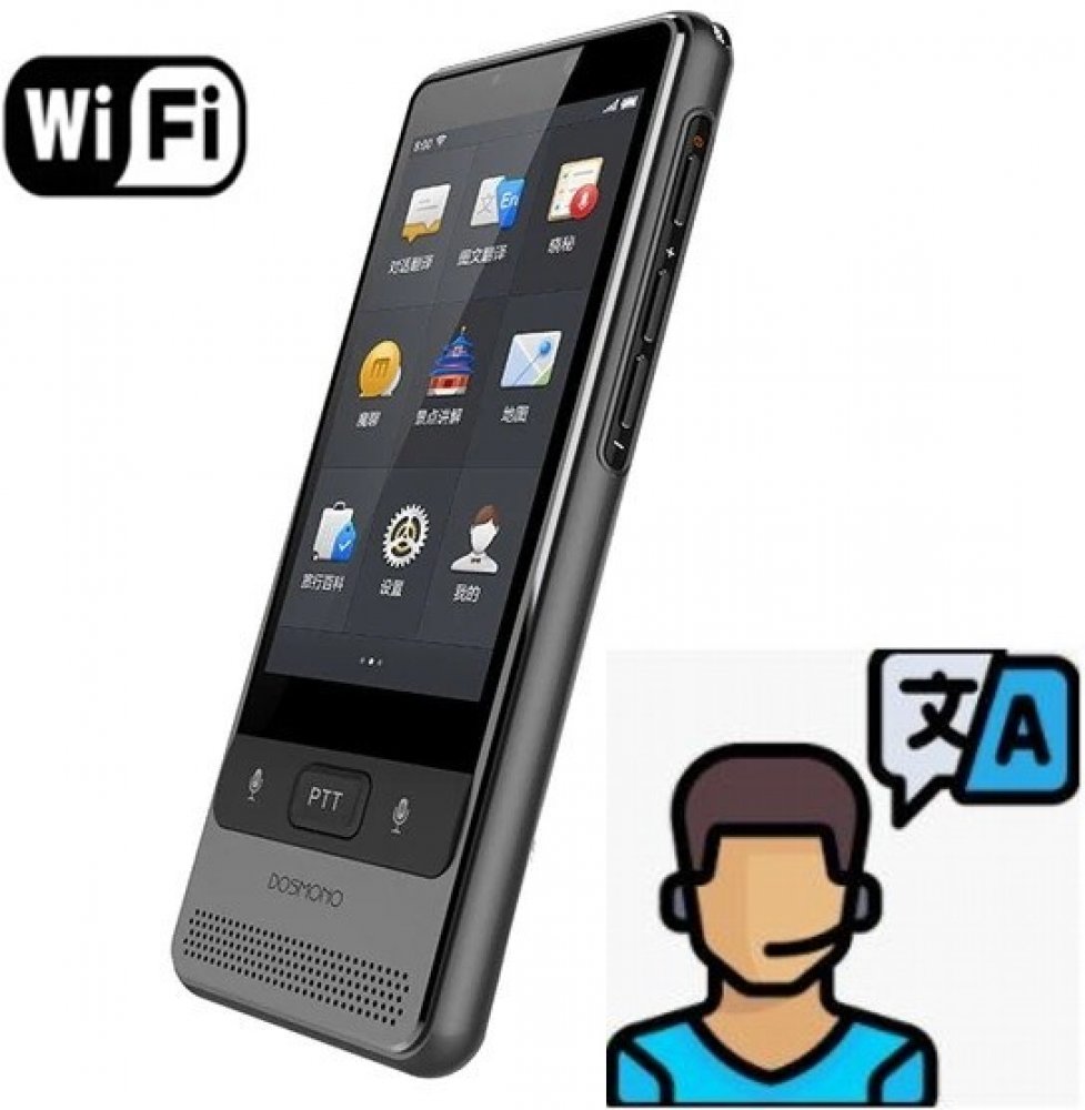 Elektronický vreckový hlasový a foto prekladač DOSMONO S501. WiFi/4G prekladač Dosmono S501 je vybavený predným i zadným fotoaparátom a dotykovým displejom 3,5", zároveň zvládne hlasový preklad v 72 jazykoch a v 8 jazykoch preloží odfotené texty. Jedná sa o inovatívne multifunkčné zariadenie s elektronickým obojsmerným prekladateľom, ktorý obsahuje okrem iného funkciu "press to talk" (stlač a roz...