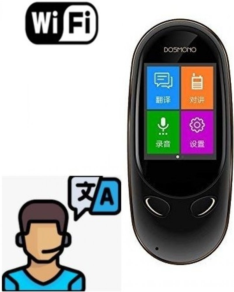DOSMONO WiFi hlasový prekladač Mini S601 - podpora 3G siete a SIM karty. DOSMONO prekladač s WiFi/ 3G a dotykovým 2,0" displejom je inteligentný tlmočník, ktorý podporuje hlasový preklad 72 jazykov online. Jedná sa o inovatívne multifunkčné zariadenie s elektronickým obojsmerným prekladateľom, ktorý obsahuje okrem iného funkciu "press to talk" (stlač a rozprávaj na báze vysielačky), WiFi pripojeni...