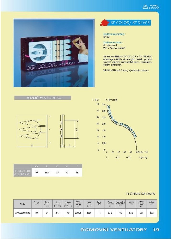 Domovní ventilátor Dospel STYL 100 WCH s časovačem, čidlem vlhkosti, zpětnou klapkou a kluznými ložisky, pro potrubí průměru 100 mm k odsávání vzduchu v koupelnách, sprchách, kuchyních a užitných prostorách.
