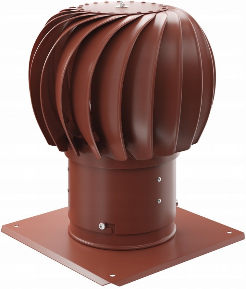 Komínová otočná ventilační turbína TRN 150 v barvě terakota (oranžovo-hnědá) od značky Dospel k instalaci na střechu skladu, výrobní haly nebo na domu. Rotační turbína chrání komín nebo ventilační potrubí před škodlivými účinky povětrnostních podmínek, jako je vítr, déšť či sníh. Zabraňuje také vniknutí jiných neči...