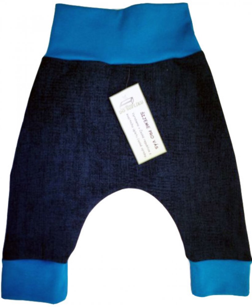 Praktické pohodlné kalhoty, v pase ukončeny do širokého lemu. Do velikosti 74 včetně je pas pouze do nápletu, od velikosti 80 je v pase tkaná pruženka šíře 2cm (neohýbá se, drží tvar).