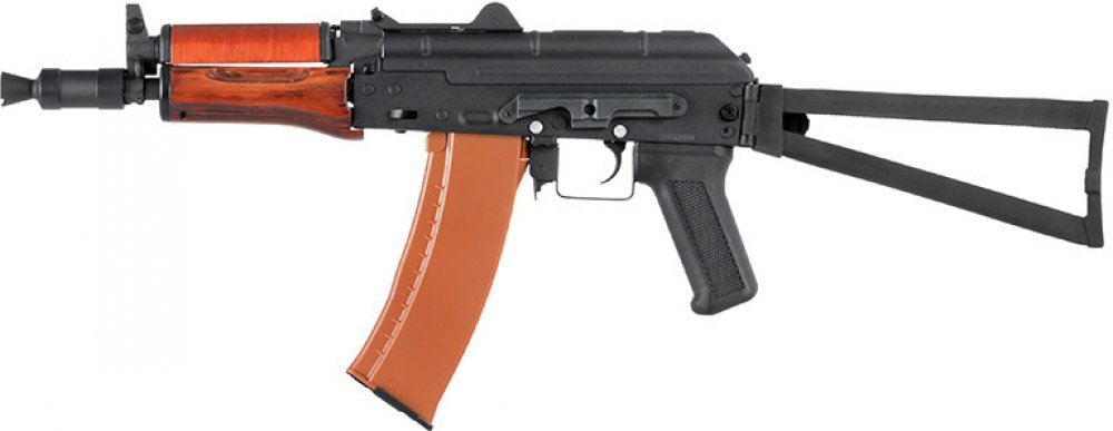 Celokovová airsoftová zbraň s dřevěným předpažbím je vyrobena firmou Double Bell. Jedná se o repliku ruské pušky AKS-74U.