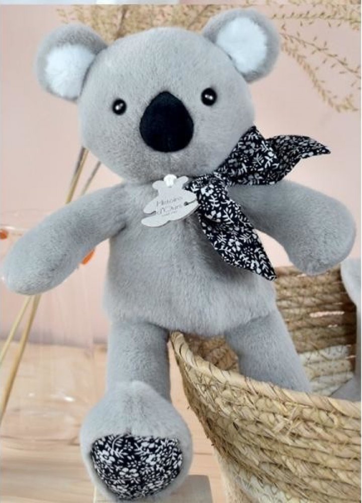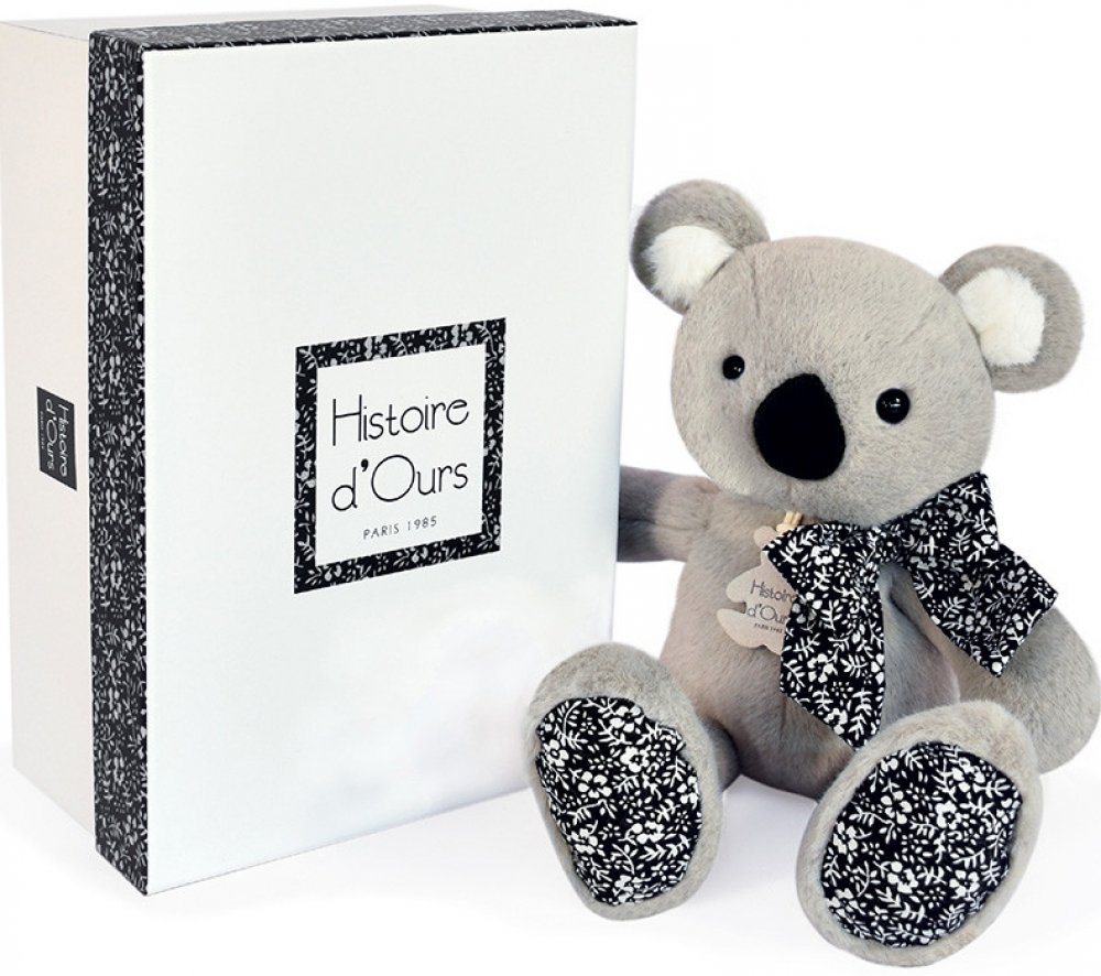 Měkoučký plyšový kamarád v rodině potěší každé dítě. Medvídek koala v šedočerné barvě bude s jemnými doteky dohlížet na všechny maličké. Je dodáván v krásné bílé krabičce v kombinaci s květinovým potiskem. Může doprovázet miminko od narození, aby mu přinesl hebkost, pohodlí a objetí. Rozvíjí smysly a zvědavost. Je to velmi pěkný dárek k Vánocům nebo k oslavě narození miminka.