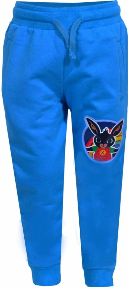 Chlapecké tepláky s motivem králíčka Binga, příjemný materiál: 60% bavlna + 40% polyester, 260 gsm, brushed fleece /super měkká a objemná příze/, barevný potisk na nohavici, dvě funkční kapsy na přední straně, v pase na gumu se šňůrkami na utažení dle potřeby, dole do manžety. Barevné provedení modré s potiskem, velikosti:92 - 2 roky98 - 3 roky104 - 4 roky110 - 5 let116 - 6 letČíslice vyjadřují výšku dítěte v cm, věk je orientační.