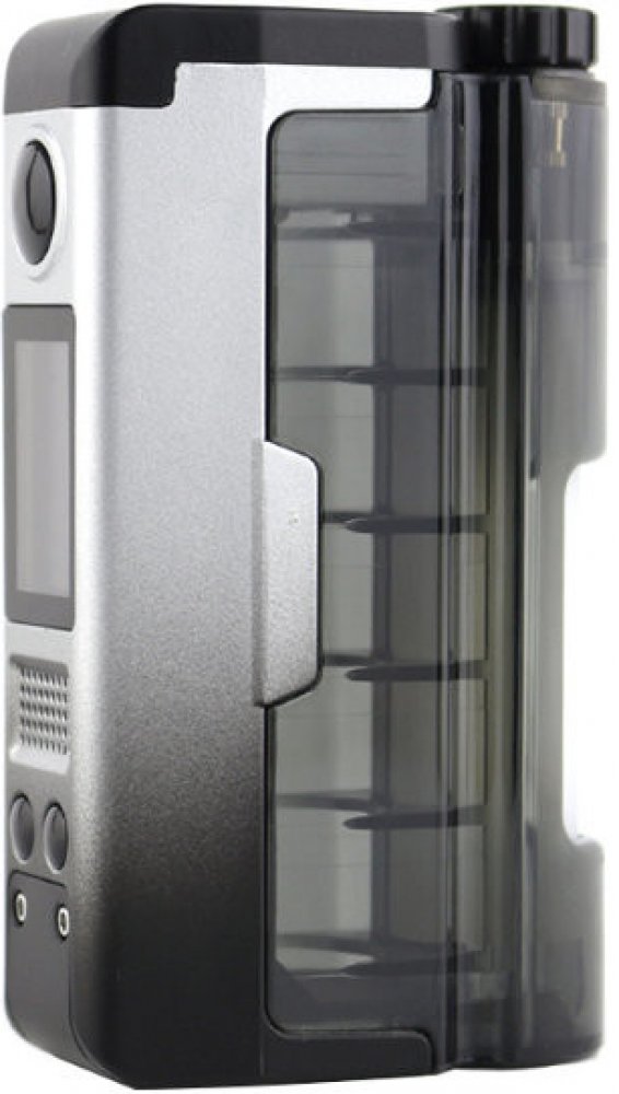 Konstrukce modu je tvořena polykarbonátem a PCTG a jeho rozměry jsou 97,5 mm x 58 mm x 28,2 mm. V horní části modu se nachází závit typu 510, na který je možné našroubovat atomizéry až do průměru 28mm. Velké žhavící tlačítko na čelní straně je doplněno 0,96 palcovým OLED displejem, který krásně zobrazuje všechny důležité údaje (stav baterie, režim, odpor, počet potahů, atd.). Mod je poháněn jednou baterií typu 20700 nebo 201700, pomocí přibalené redukce je ale možné použít i baterie 18650. Kromě klasického režimu výkonu je možné nastavit také teplotní režim.