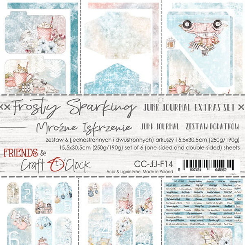 DP Craft Blok pro scrapbooking - CRAFT O'CLOCK - JUNK JOURNAL SET - FROSTY SPARKING