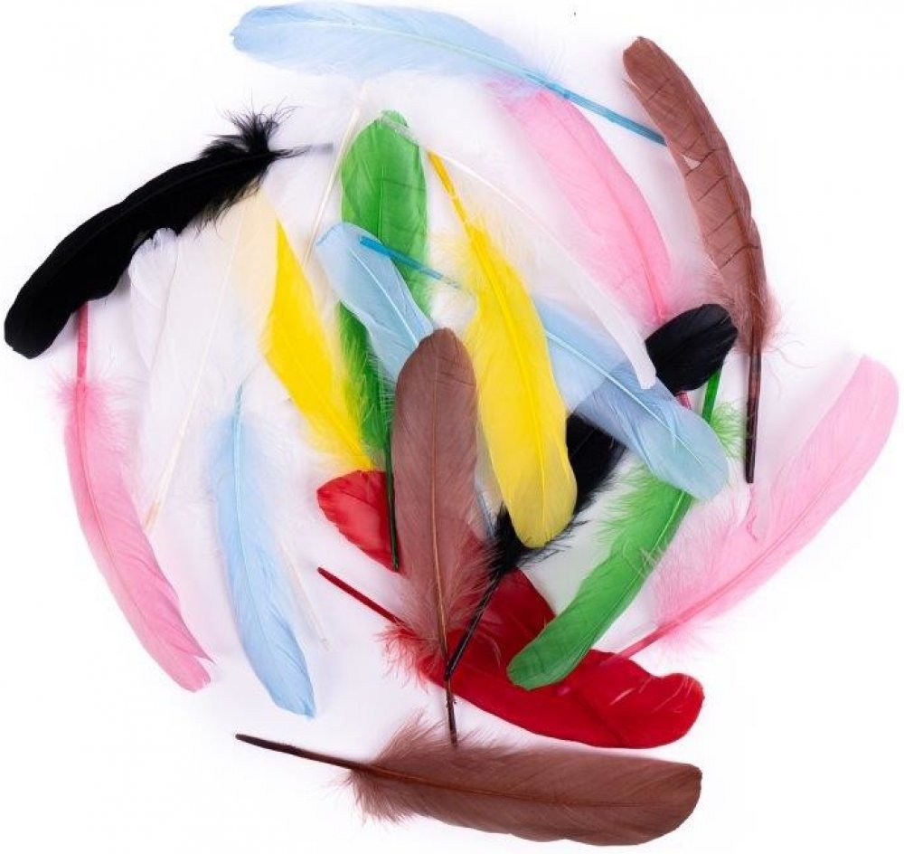 Dlouhá peří v různých barvách jsou skvělým doplňkem pro kreativní dětské projekty a další.