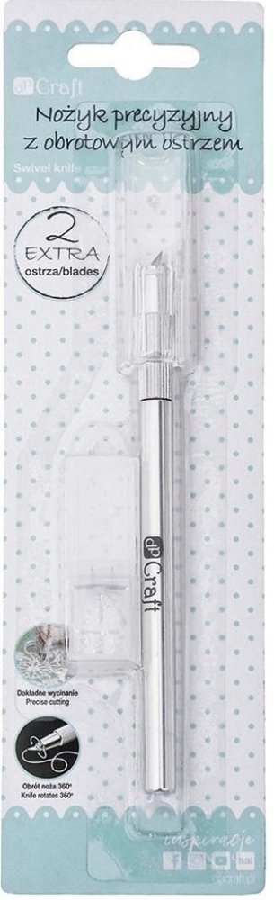 Přesný nůž s otočným ostřímDALPRINT ➡️ Děti/Školní potřeby/Umělecké předměty/Plastelíny, modelovací hmota✔️Přesný nůž s rotující čepelí na vyřezávání kontur.má vyměnitelnou čepel, která se otáčí o 360.Ideální pro přesnou práci při kreativních projektech, jako je cardmaking, bookcraping nebo homeedecorating. může úspěšně nahradit plotr na vyřezávání oblouků a tvarů do papíru, kartonu, korku nebo te...