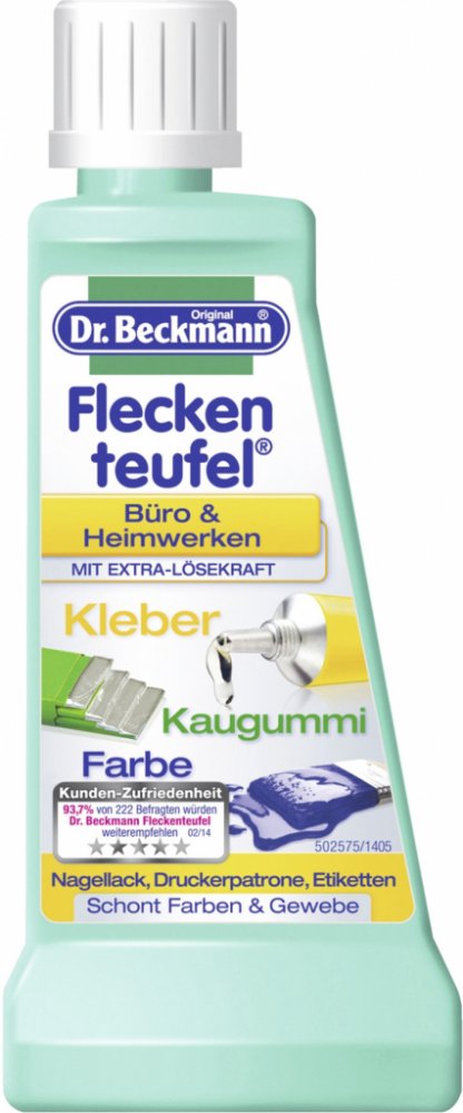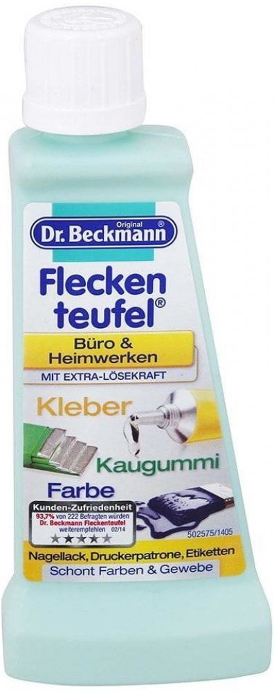Dr. Beckmann ďáblík na lepidlo, žvýkačka, barvy 50 ml - odstraňovač skvrn od lepidla, žvýkačky, z kanceláře a domácího kutilství, barvy, laky na nehty, skvrny od inkoustových kazet, etiket. S extra výkonem rozpouštědla. Pro pratelné i nepratelné textilie. Chrání barvy a materiály. Složení s extra silnou silou proniká do skvrny a tkaniny a umožňuje snadné oddělení. To se vztahuje na žvýkačky, stejn...