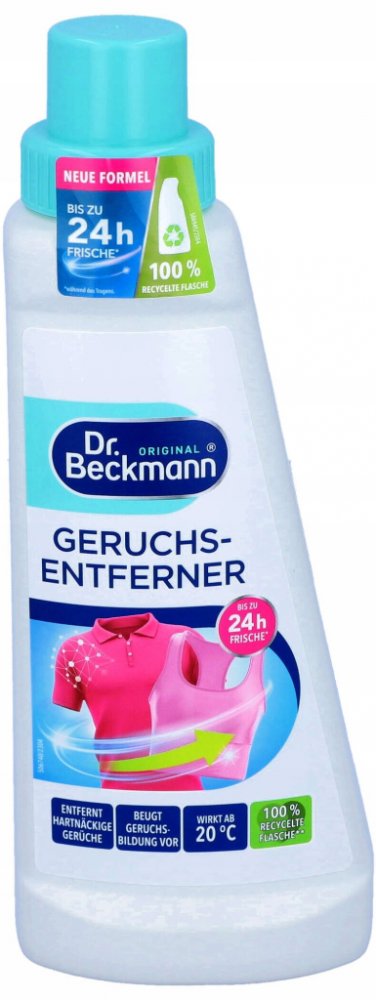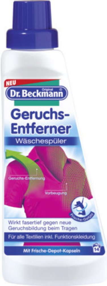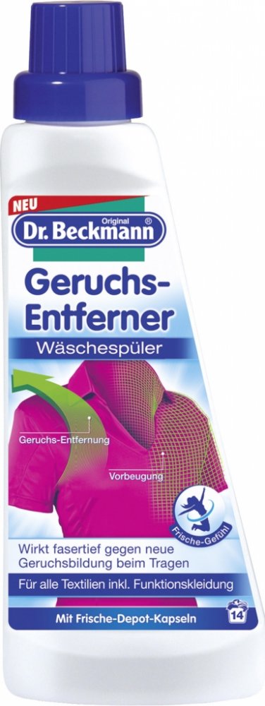 Dr. Beckmann speciální odstraňovač zápachu účinně odstraňuje zápach všech textílií. Díky komplexnímu složení skvěle odstraňuje pachy prádla a chrání prádlo před novými pachy. Vhodný pro praní se všemi pracími prostředky na všechny teploty. Vystačí až na 14 pracích cyklů.