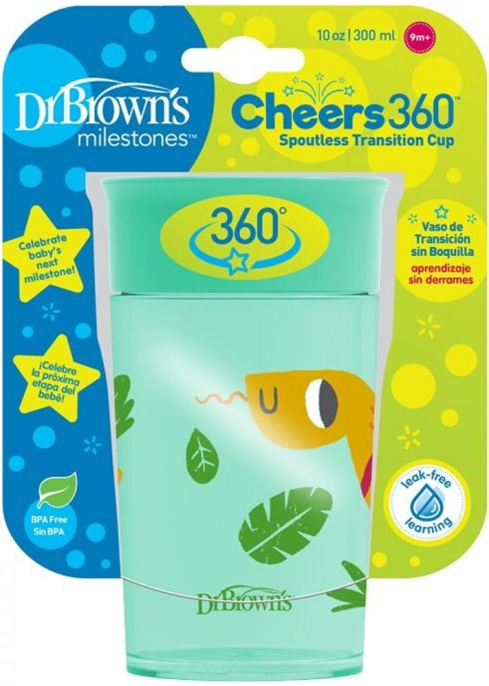 Nastal čas na změnu z hrnku pro miminko na hrnek pro větší dítě? Cheers 360-stupňový výukový hrnek umožňuje pít z celého obvodu hrnku, aniž se z něj vylilo. Průhledný silikonový ventil a průsvitná stěna hrnku umožňují vidět do nádoby. Zkosený tvar připomíná pohár pro dospělé. V horní části má držadla pro samostatné uchopení a pití.