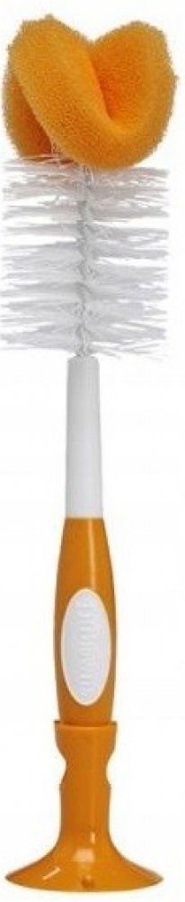 Jemný kartáč s houbičkou a měkkými odolnými štětinami na důkladné a snadné čištění, které nepoškrábou povrch. Tvarovaná protiskluzová rukojeť pro snadnou manipulaci a uchopení. Gumové drážkované ukončení rukojeti je určeno speciálně k čištění saviček. Stojan s přísavkou slouží k umístění kartáče v blízkosti dřezu nebo jako klip na uchycení.