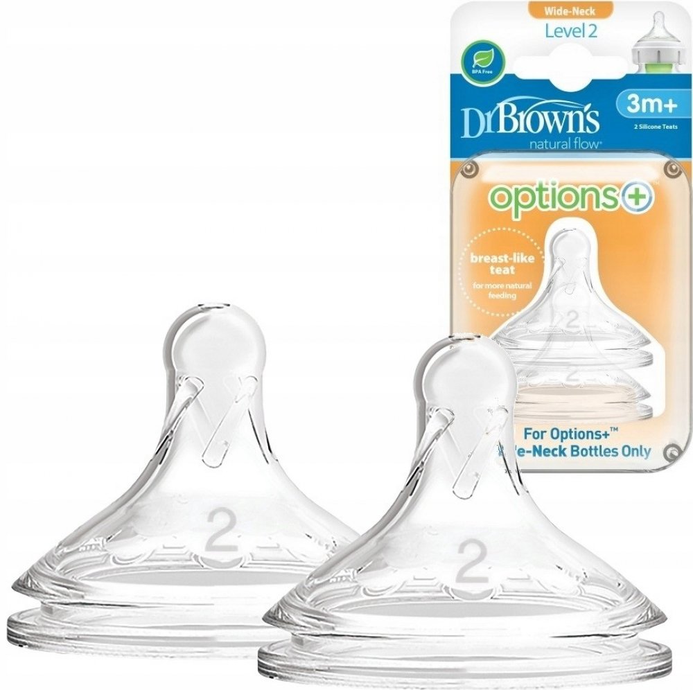 Savička ve tvaru prsu pro přirozenější krmení, určená na láhve se širokým hrdlem, stupeň 2. Tvarovaná savička s měkkou hlavičkou, která postupně přechází do pevnějšího základu. Pomáhá lepšímu přisátí a přirozenější zkušenosti s krmením. Jedinečně navržená savička spolu s vnitřním ventilačním systémem kojenecké láhve pomáhá batolatům krmit se vlastním tempem. Savičky jsou určeny výhradně pro kojenecké láhve se širokým hrdlem Dr.Brown's Options+. Na jiné láhve tyto savičky nemusí správně pasovat a jejich použití při krmení dítěte může vést k potížím. K dispozici jsou savičky na láhve se širokým hrdlem se 6 stupni průtoku: Preemie – pro předčasně narozené děti, stupeň 1 – pro novorozence, stupeň 2 – pro kojence od 3 měsíců, stupeň 3 – pro kojence od 6 měsíců, stupeň 4 – pro kojence od 9 měsíců, Y-cut – savička se zářezem ve tvaru Y na krmení kojenců od 9 měsíců. Umožňuje rychlejší průtok potravy s vyšší hustotou. Stupeň 2 – krmení kojenců ve věku od 3 měsíců Když se dávky mléka zvyšují a krmení ze savičky stupně 1 trvá déle, mnozí rodiče se rozhodnou přejít na savičku stupně 2. Zvažte úroveň 2, pokud vaše dítě již přijímá tuhou stravu nebo pokud pediatr doporučil zahustit mléko. Savička je vyrobena ze super měkkého silikonu vysoké kvality, neobsahuje BPA. Upozornění: Savičky na krmení nejsou určeny k tišení nebo uklidňování dětí.