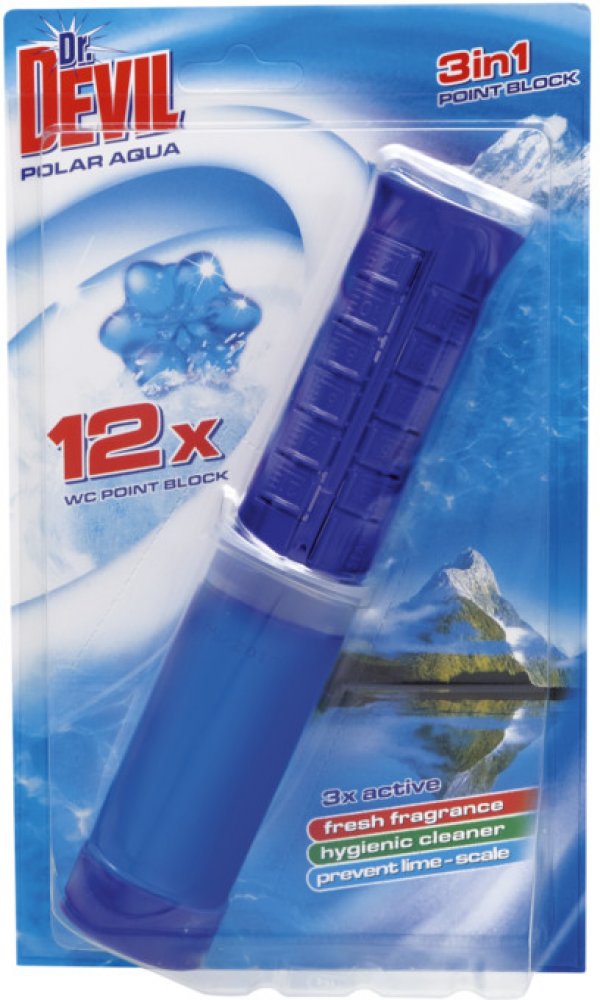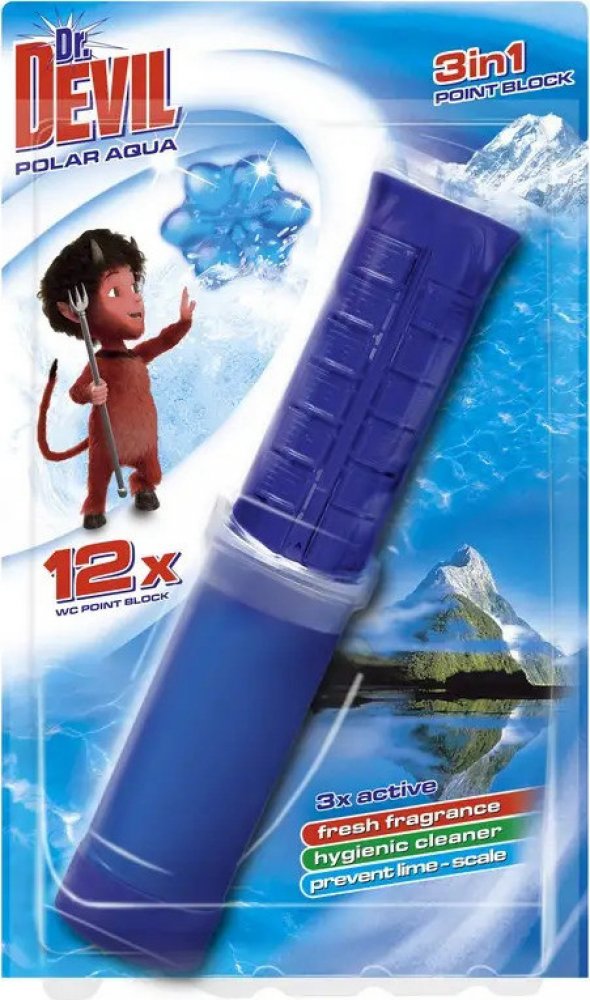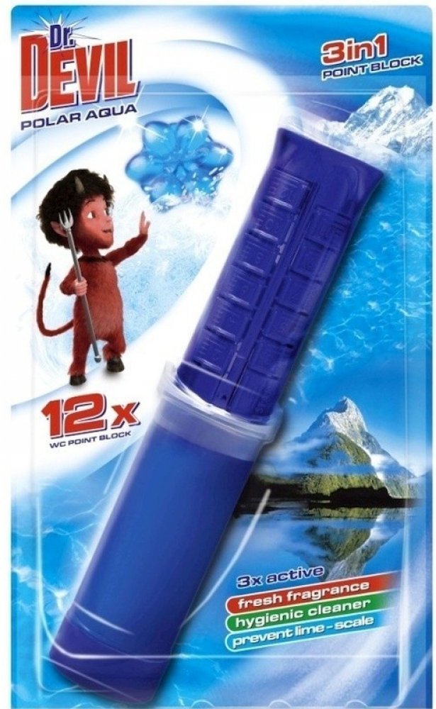 Dr. Devil WC bodový blok Polar Aqua účinně čistí, osvěžuje toaletu a brání tvorbě vodního kamene. Speciální gelová forma zajišťuje dlouhotrvající účinek – jedna kytička vydrží přibližně týden. Balení 75 ml poskytne až 12 dávek (kytiček) pro nepřetržitou čistotu a svěžest.