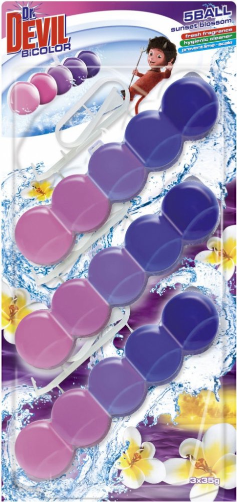 Dr.DEVIL BiCOLOR WC 5Ball závěs do WC SUNSET BLOSSOM 3 x 35 g