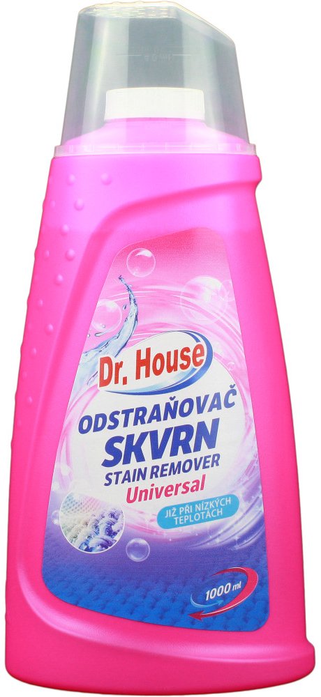Tekutý odstraňovač skvrn Dr. House 1 L efektivně odstraňuje kávu, čaj, červené víno, ovoce i trávu. Použitelný i na barevné a jemné tkaniny; zvyšuje účinnost pracích prostředků a chrání barvy.