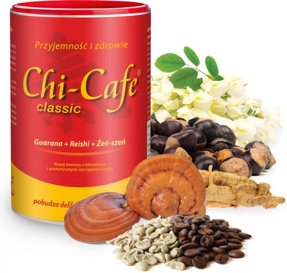 Chi-Cafe je zdravá kompozice kávy, která vám navodí dobrou náladu. Na rozdíl od běžné kávy nepřekyseluje organismus. Má příjemnou vůni, skvěle chutná, je šetrná k žaludku a reguluje trávení. Povzbuzuje jemně, ale na delší dobu.