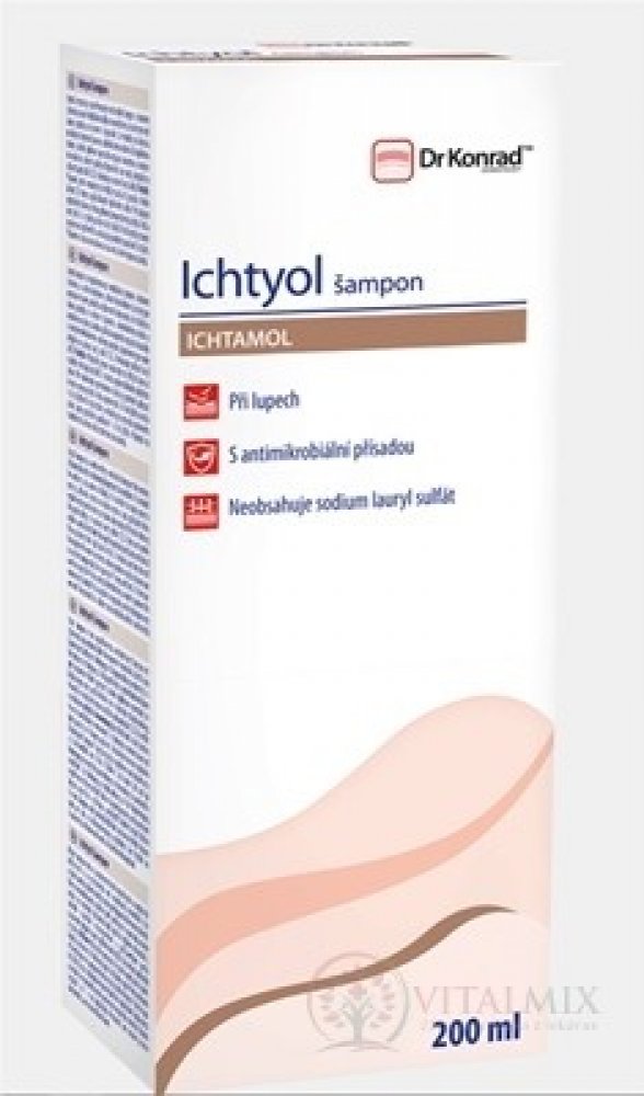 Ichtyol šampon je určený k mytí vlasové pokožky se sklonem k šupinatění. Kromě běžných lupů je šupinatění přítomno také u pokožky se sklonem k lupence, atopickému ekzému či seborhoickému ekzému. Šampon obsahuje ichtamol a antimikrobiální složku hexamidin. Lokální aplikace napomáhá regulaci mazotoku a kontrole mikrobiálního osídlení pokožky.Přípravek mohou používat i těhotné a kojící ženy a děti vš...