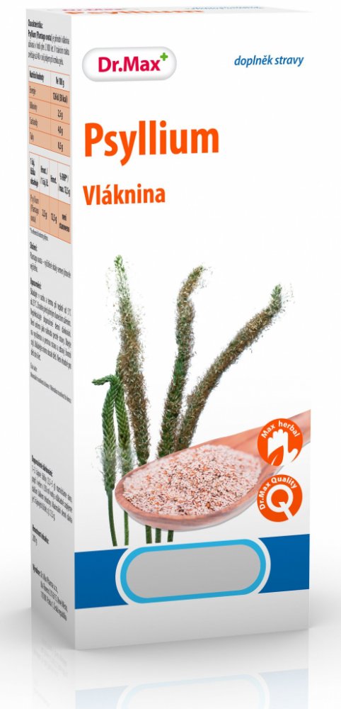 Doplněk stravy Dr. Max Psyllium obsahuje rozpustnou vlákninu získanou z obalů semen jitrocele vejčitého, který příznivě ovlivňuje funkci střevního traktu. Pro dospělé a děti od 6 let.
