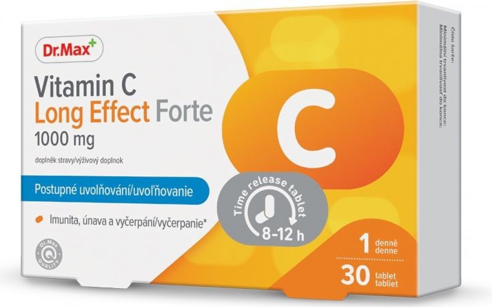 Dr. Max Vitamin C Long Effect Forte 1000 mg obsahuje vitamin C ve formě tablet s postupným uvolňováním. Zdravá imunita a snížení únavy a vyčerpání.
