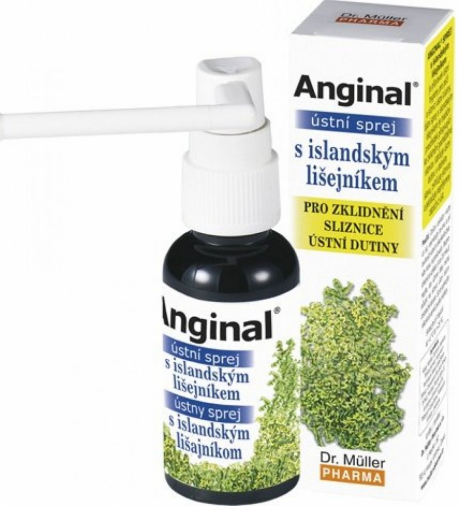 Anginal sprej s islandským lišejníkem je přípravek ústní hygieny pro péči o sliznici ústní dutiny. Ústní sprej s islandským lišejníkem je tradiční prostředek přispívající ke zklidnění podrážděné sliznice. Udržuje ústní dutinu v dobrém stavu, zvlhčuje sliznice a potlačuje nepříjemný zápach z úst.