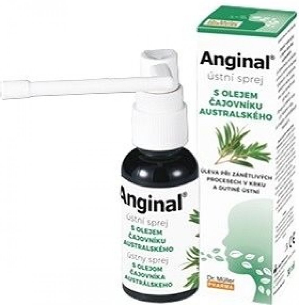 Dr. Müller Anginal ústní sprej s tea tree olejem (TTO) 30 ml zdravotnický prostředekAnginal ústní sprej s olejem čajovníku australského přináší úlevu při zánětlivých procesech v krku a dutině ústní. Dávkování a způsob užitíDávkování:3 - 6x denně nebo podle potřeby.Užití:Anginal ústní sprej s olejem čajovníku australského je zdravotnický prostředek určený k mírnění symptomů spojených snachlazením, infekcemi dutiny ústní, krku nebo horních cest dýchacích. Ulevuje od bolesti v krku, při chrapotu a podrážděnýchhlasivkách.