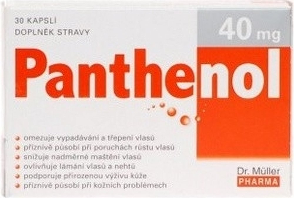 Panthenol kapsle mají příznivý vliv na kvalitu a růst vlasů, zlepšuje jejich lesk, omak a ohebnost. D-panthenol je látka ze skupiny vitaminů B5. Má příznivý vliv na kvalitu a růst vlasů, zlepšuje jejich lesk, omak a ohebnost. Chrání vlasy před mechanickým poškozením a obecně zvyšuje jejich odolnost vůči škodlivým vlivům prostředí a zátěži při česání, fénování a ondulaci.