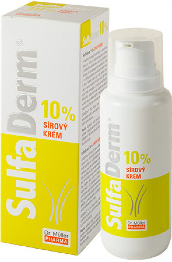 SulfaDerm® 10 % SÍROVÝ KRÉM s tradiční účinnou přírodní látkou – elementární sírou. Je určen ke každodenní péči o citlivou a především nadměrně se mastící pokožku se sklonem k dermatologickým problémum, jako je například zvýšení produkce kožního mazu a akné. Vysoký obsah síry čistí pletové póry, váže na sebe nadbytečný kožní maz a tím omezuje vznik komedonu a redukuje nepřirozený lesk kůže. Napomáhá také odstranovat starší vrchní vrstvy buněk pokožky a tím přispívá k její regeneraci. Síra má i antimikrobiální účinky. SulfaDerm® 10 % Sírový krém působí i proti vysušování kůže a zanechává pokožku hebkou a přirozeně krásnou.