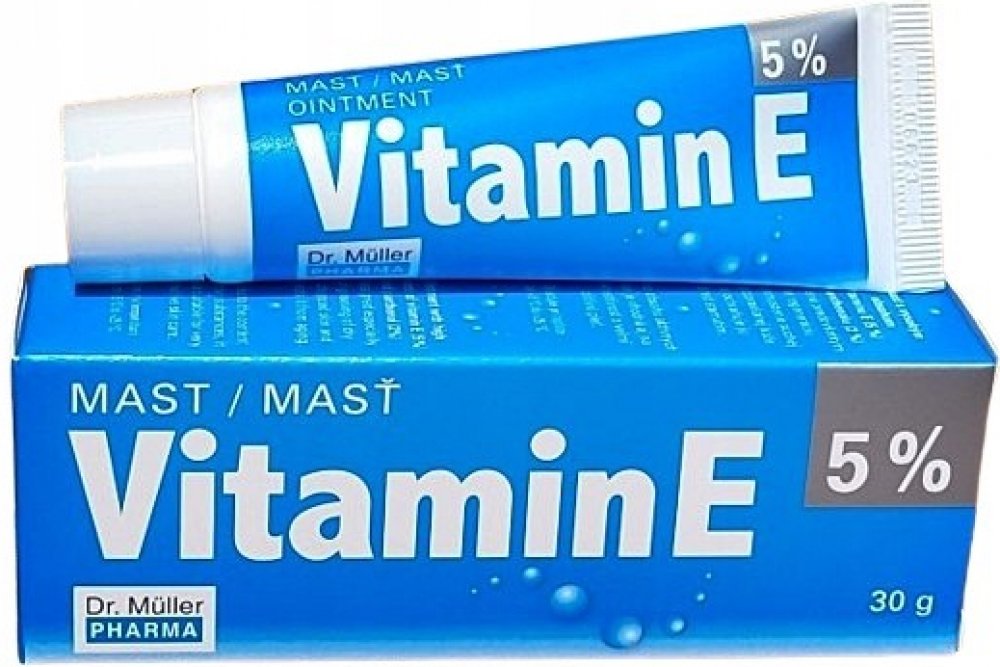 Vitamin E, alfa-tokoferol, v tucích rozpustný vitamin, se přirozeně vyskytuje především v rostlinných olejích a obilných klíčcích. V dermatologii vitamin E při aplikaci na pokožku podporuje její hydrataci, vláčnost a hebkost. Všechny tyto jeho účinky souvisí především s antioxidační aktivitou – schopností odstraňovat volné radikály, které vznikají v důsledku působení různých typů záření a chemických či jiných nežádoucích vlivů životního prostředí. Při zevním použití tak chrání buňky pokožky před poškozením, zpomaluje proces stárnutí a přispívá k pružnosti, hebkosti a mladistvému vzhledu pokožky.