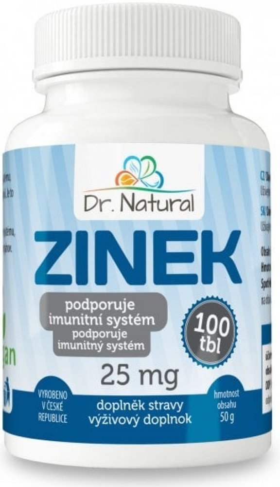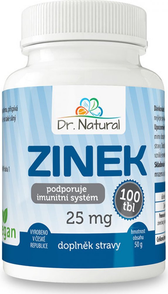 Zinek 25 mg od Dr.Natural je doplněk stravy určený k pravidelnému doplnění zinku ve vysoké koncentraci. Zinek je esenciální stopový prvek, který se podílí na celé řadě důležitých procesů v organismu. Napomáhá normální funkci imunitního systému, přispívá k ochraně buněk před oxidativním stresem a hraje roli při buněčném dělení.