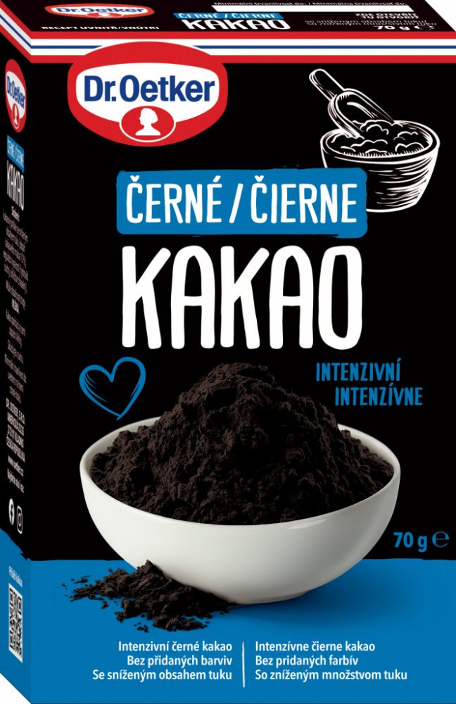 Černé kakao Dr. Oetker je jedinečné kakao intenzivní černé barvy pro dokonalé tmavé obarvení těst, polev i fondánu.