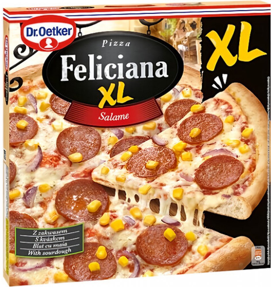 -- Pikantní pizza na tenkém kváskovém těstě obložená pikantním salámem, posypaná sýry mozzarella a eidam, na rajčatovém pyré s voňavou  bazalkou a oreganem.Pizza Feliciana XL přináší vše, co milujete na klasické Felicianě – tenké kváskové těsto,…