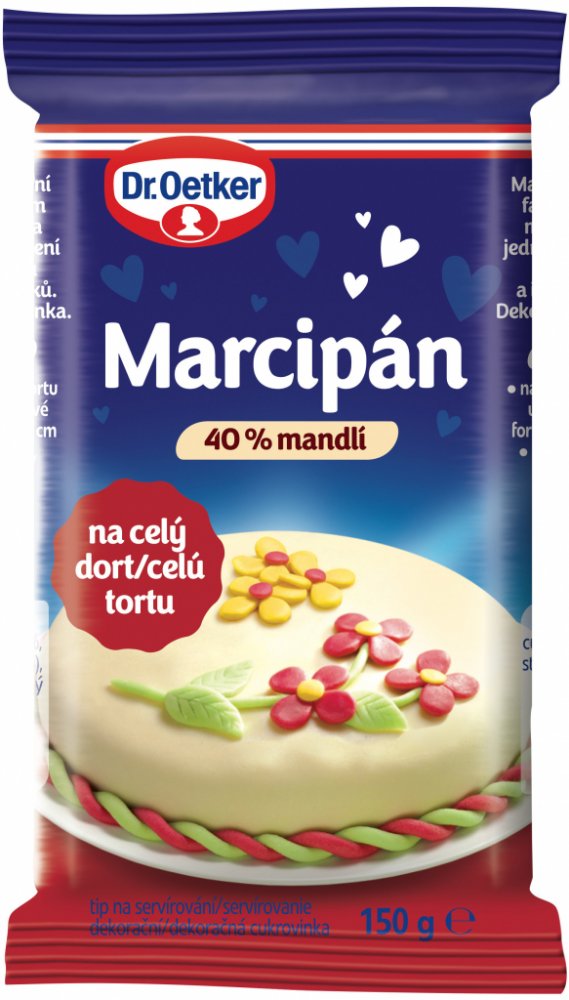 Extra hladký, pravý marcipán čistě přírodní barvy k okamžitému použití. K potahování a zdobení dortů a jiných moučníků. Vystačí na potažení celého dortu o průměru 12cm, PRO VĚTŠÍ DORTY DOPORUČUJEME 2-3 balení. Neobsahuje palmový olej.