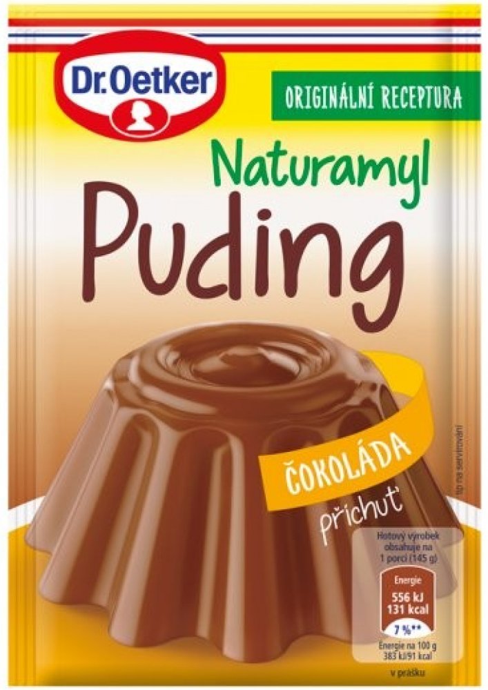 1. na trhu, Originální receptura, Náš puding Dr. Oetker Naturamyl v sobě spojuje tradiční českou chuť Naturamyl a vysokou kvalitu Dr. Oetker., SOS dětské vesničkyPodporujeme rodinuwww.podporujeme-rodinu.cz, Puding čokoládový v prášku na 1/2 l mléka (4 porce),