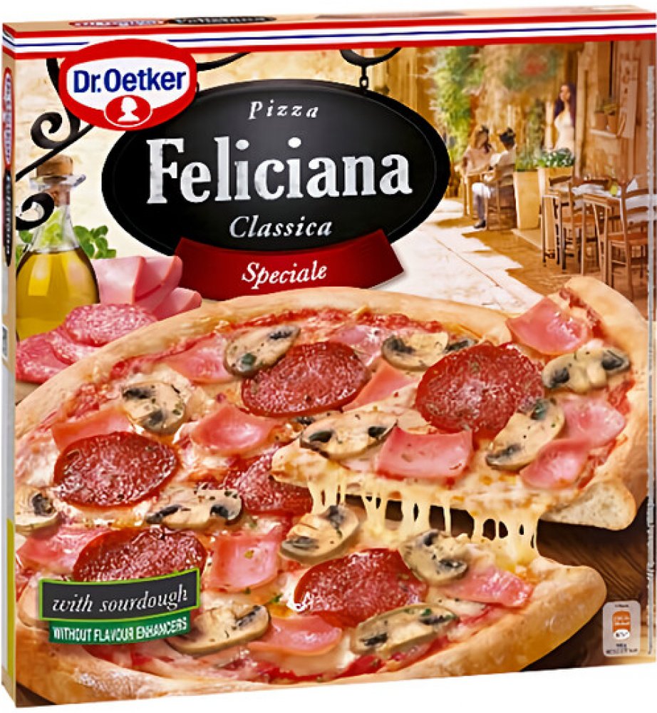 -- Pizza Feliciana si Vás získá svou lahodnou chutí, tenkým kváskovým těstem s nepravidelnými okraji a bohatou oblohou z vysoce kvalitních surovin na jemném rajčatovém základu. Feliciana Speciale je obložená žampiony, šunkou, salámem a sýry Mozzarella…