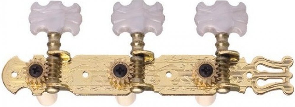 Mechanika ladící na klasickou kytaru, zlatá s bílými kolíky, (pravá + levá)