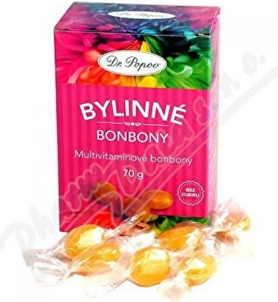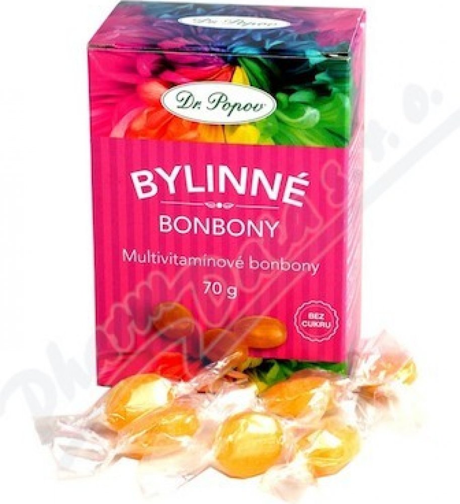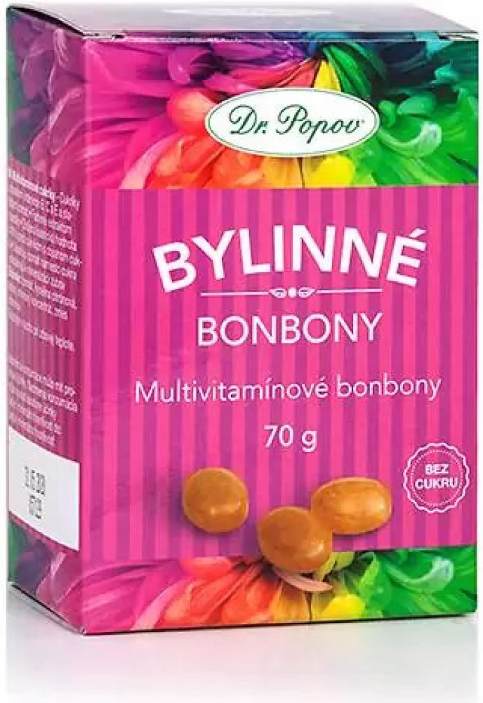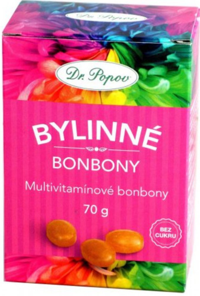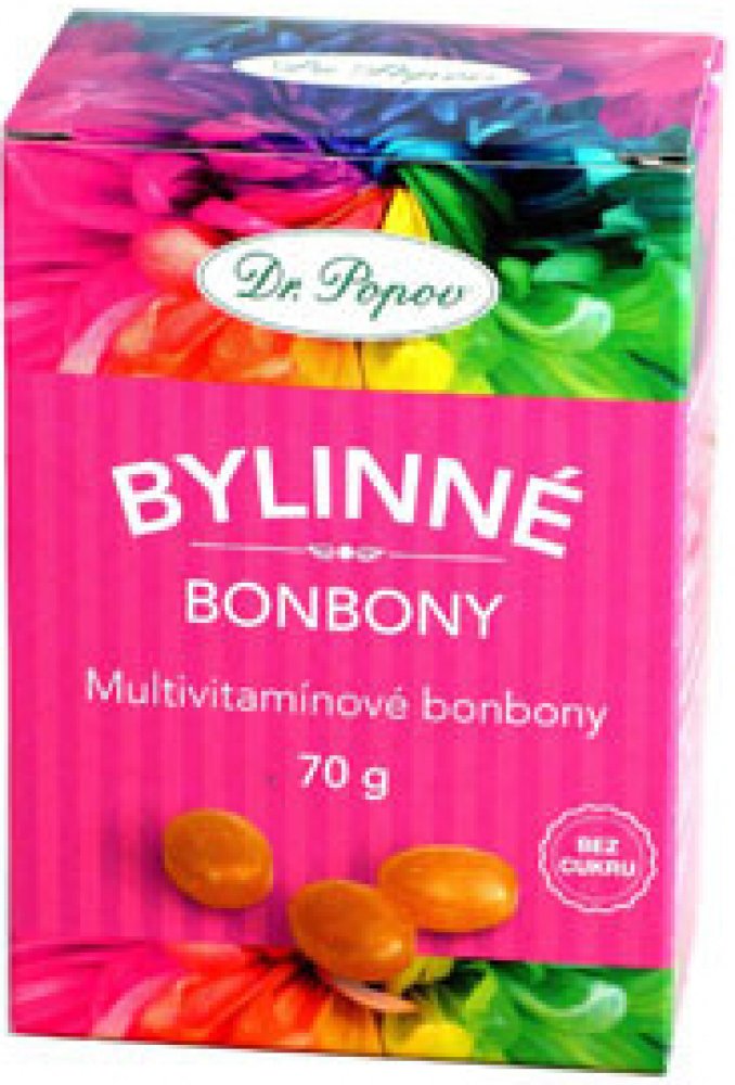 Bylinné bonbony Dr. Popova – mají sníženou kalorickou hodnotu o 40 % (oproti bonbonům s obsahem cukru).