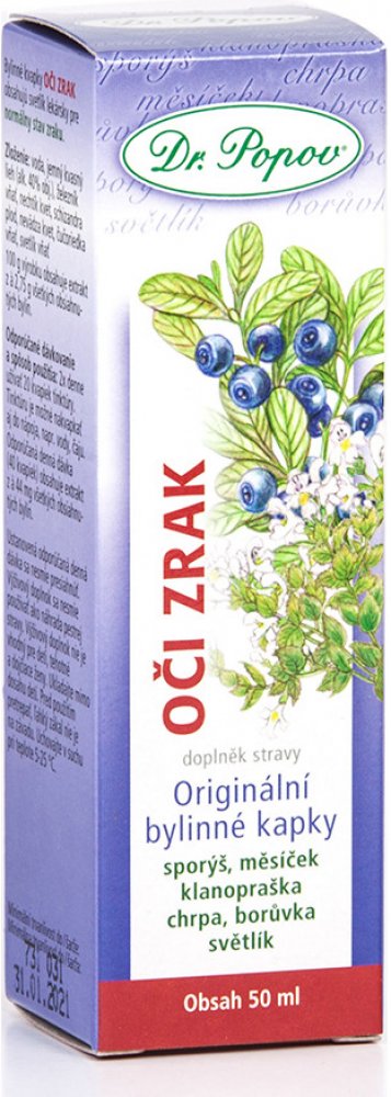 Originální bylinné kapky Dr. Popova Oči – zrak obsahují 6 znamenitých bylin, které tradiční bylináři doporučují užívat pro zdravý stav zraku.