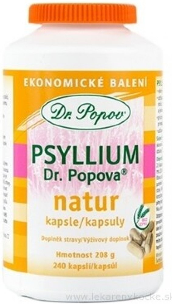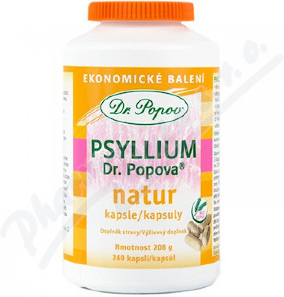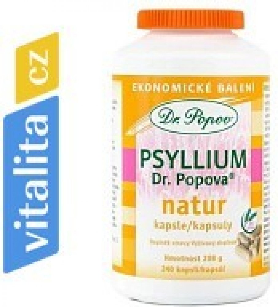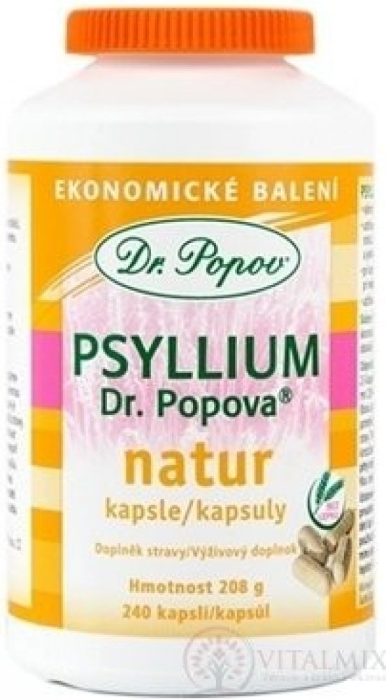 Dr. Popov Psyllium je doplněk stravy ve formě kapslí. Psyllium je rozpustná vláknina, která se získává z vyčištěných obalů semen jitrocele indického (Plantago ovata). Ten roste v Iráku, Pákistánu, Austrálii a hlavně v Indii, kde je tato surovina nejkvalitnější. Právě odsud je pro vás dovážena.