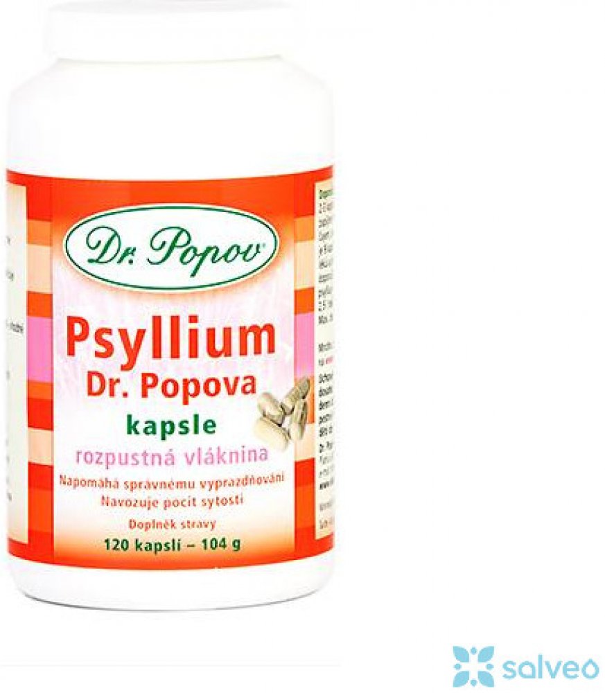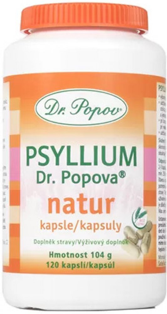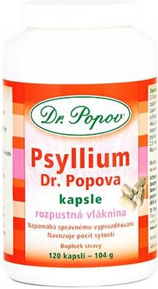 Psyllium Dr. Popova změkčuje stolici a zároveň zvětšuje její objem. Tím napomáhá správnému a snadnému vyprazdňování (důležité při tuhé a nepravidelné stolici, diskomfortu v oblasti konečníku, v těhotenství, apod.).