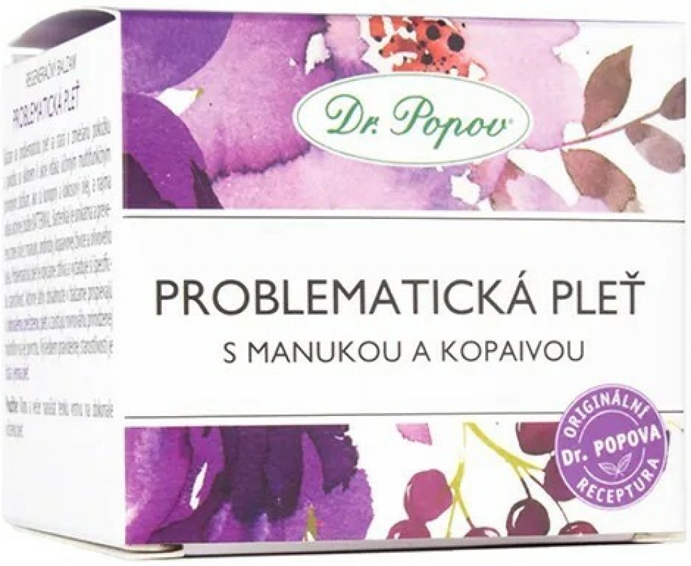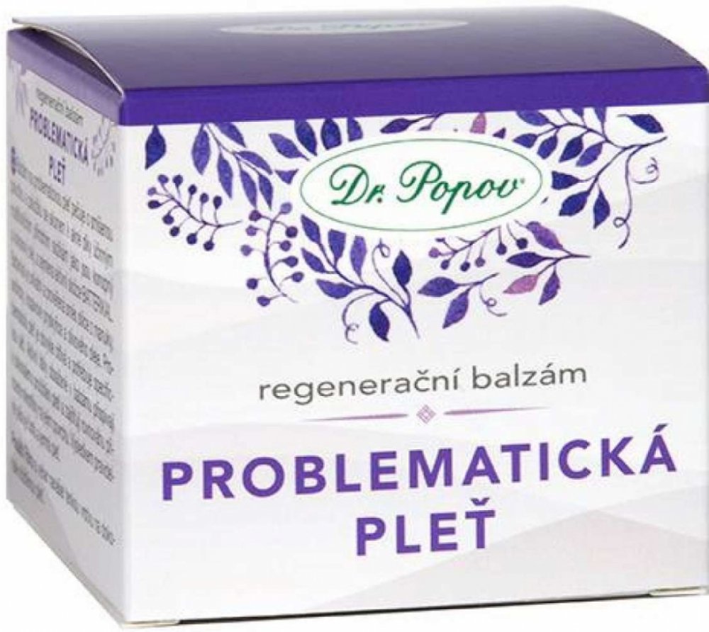 Regenerační balzám PROBLEMATICKÁ PLEŤ, 50 ml Dr. Popov. Pro dokonalé pročištění pleti se sklonem k akné. Čistě přírodní složení, bez parabenů.
