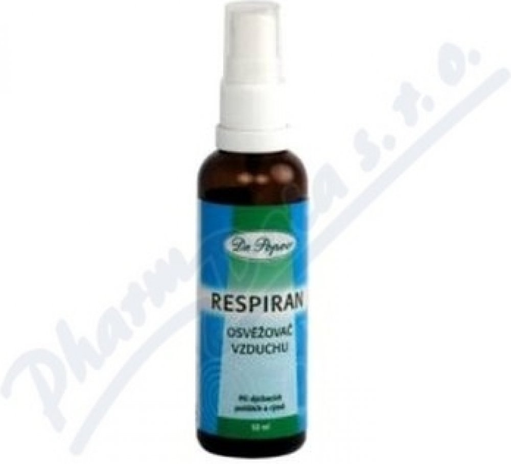 Aktivní osvěžovač vzduchu Respiran Dr. Popova obsahuje ojedinělou kombinaci esenciálních olejů, které příznivě působí při dýchacích potížích a rýmě: mátu, eukalyptus, levanduli a Tea Tree Oil.