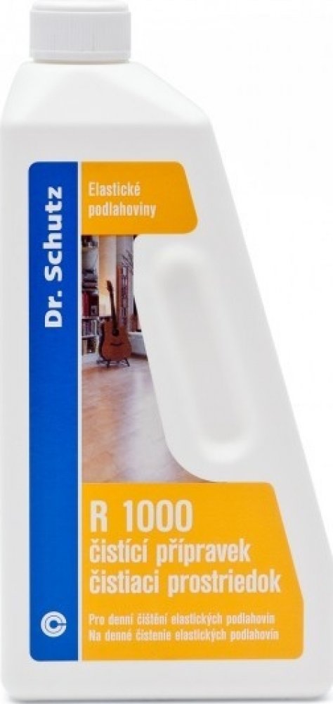 Dr. Schutz R1000 je speciální čistící prostředek pro běžné denní čištění a ošetřování elastických podlahovin a tvrdých podlahovin jako jsou PVC, CV, Polyolefil, linoleum, kaučukové podlahy, přírodní a umělý kámen. Čistí a ošetřuje jedním pracovním postupem a působí protiskluzně. Vytváří hedvábně matný, antistatický ochranný film. V používaných koncentracích je pH-neutrální.