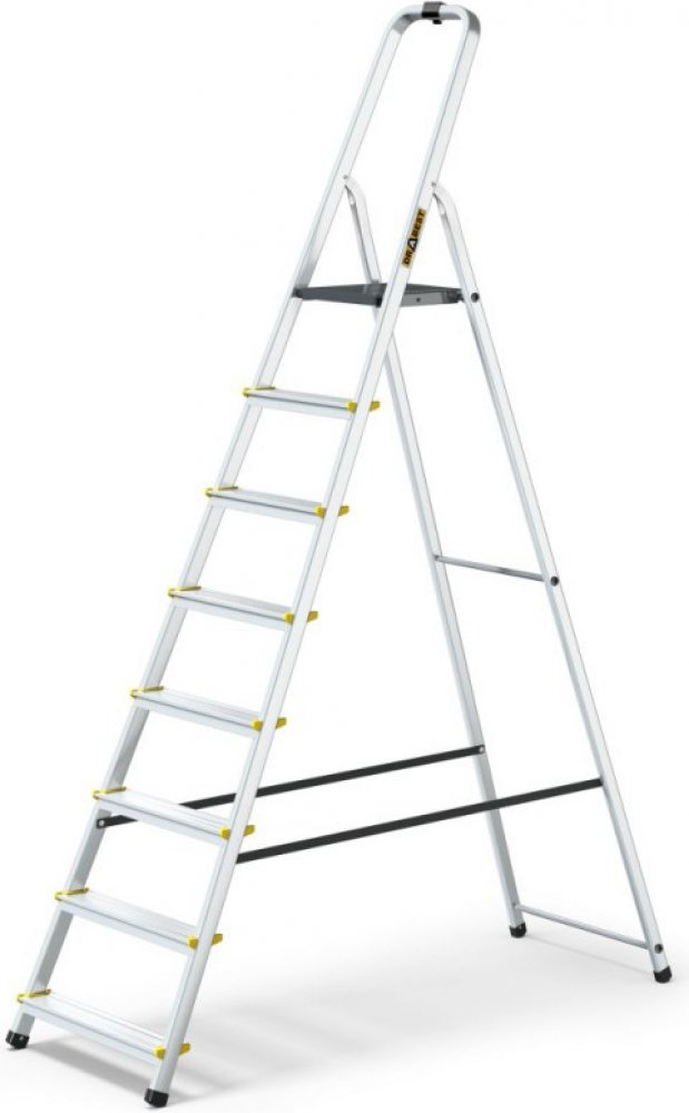 Profesionální hliníkové schůdky pro každodenní intenzivní používání. 8 stupňů, max. pracovní výška 3,62 m, nosnost 150 kg, háček na uchycení vědra. Certifikace TÜV Rheinland, EN 131 pro profi použití...
