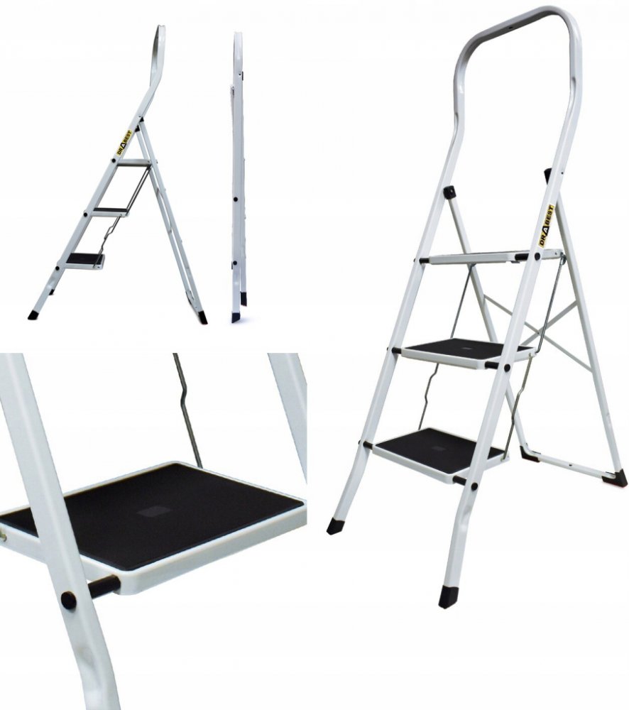 Stabilita a pohodlí doma, v kanceláři nebo v gastronomii. Žebřík je vynikající produkt pro práci v malých výškách a prodloužené madlo chrání před případnými pády ze žebříku. Schody 30 x 20 cm s protiskluzovým plastovým povrchem. Vysoce kvalitní ocel potažená bílým lakem. Ocel s antikorozními vlastnostmi.