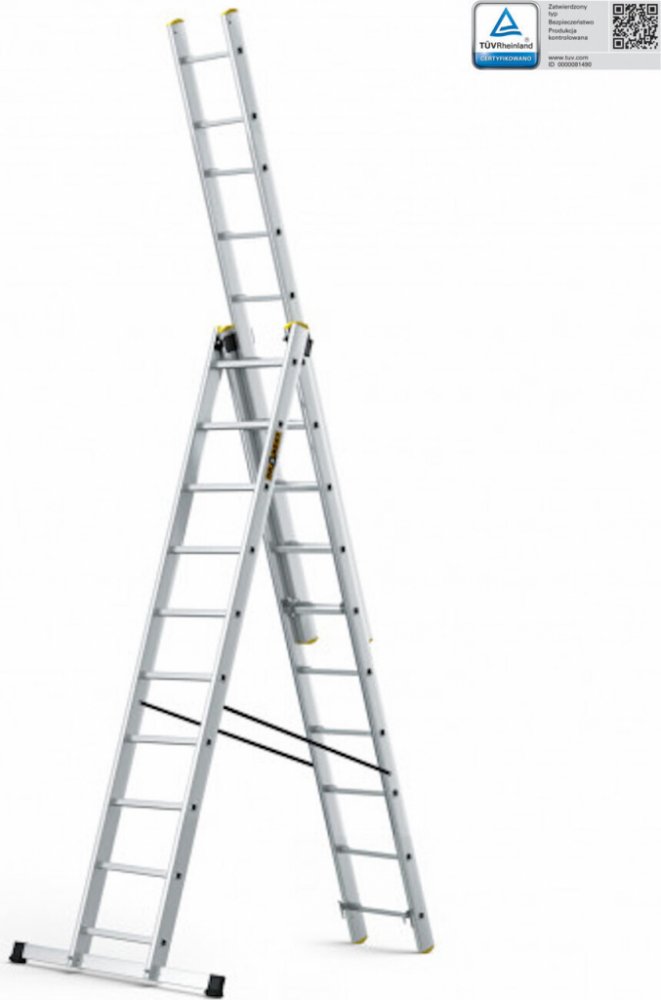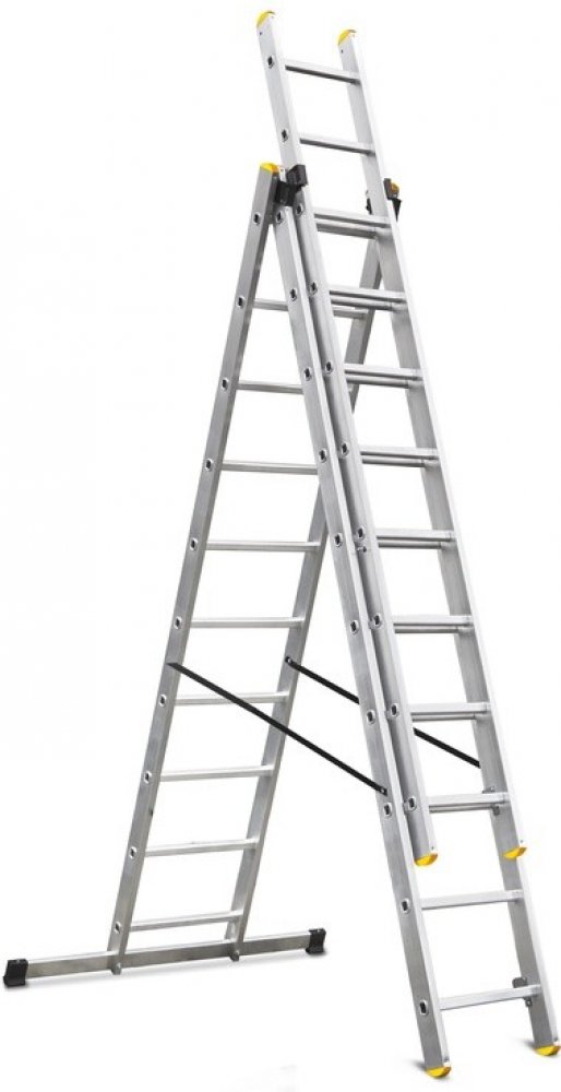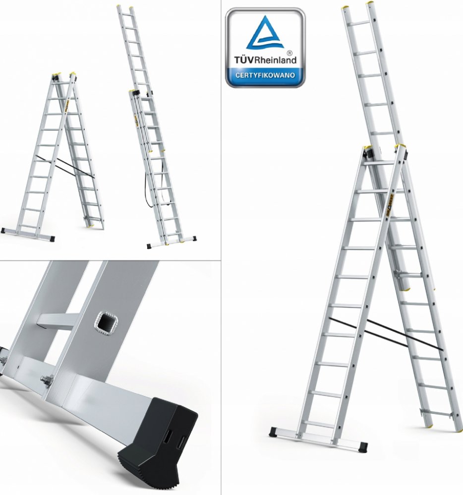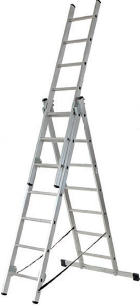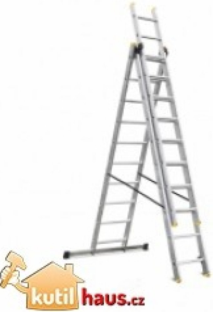 Trojdílný univerzální hliníkový žebřík je vyroben z kvalitního hliníku a je tak nepostradatelným pomocníkem ať už v zahradě, nebo při pracích kolem domu. Délka 10 příčkového žebříku je od 2,80 m do 6,20 m. Žebřík se dá rozložit do klasického i vysunutého tvaru A. Žebřík je vybaven protiskluzovými paticemi. Nosnost žebříku je 150 kg a je vhodný pro intenzivní používání.