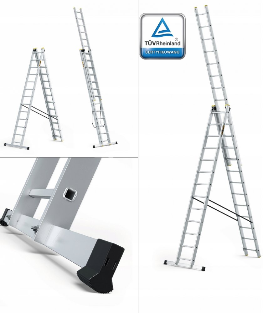 Drabest hliníkové žebříky 3 7.77 m 24.6 kg 8.61 m 13 stupňů