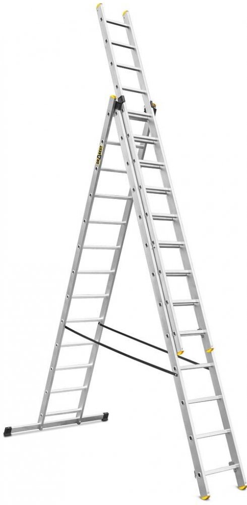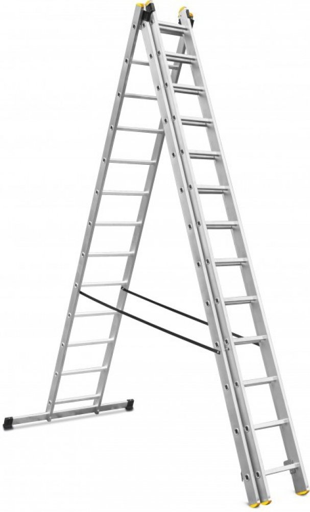 Žebřík 3x13 příček PROFI DW313 DRABESTVíceúčelový žebřík se stabilizační lištou DRABEST lze sestavit jako štafle, výsuvný nebo opěrný. Žebřík nabízí široké možnosti uplatnění jak v domácnosti, tak i na zahradě. Nosným prvkem žebříku DRABEST je tažený hliníkový profil, do kterého jsou nalisovány příčky s rozměry 28x28 mm. Konstrukce spolu s robustně nalisovanými příčkami dává žebříku potřebnou tuho...