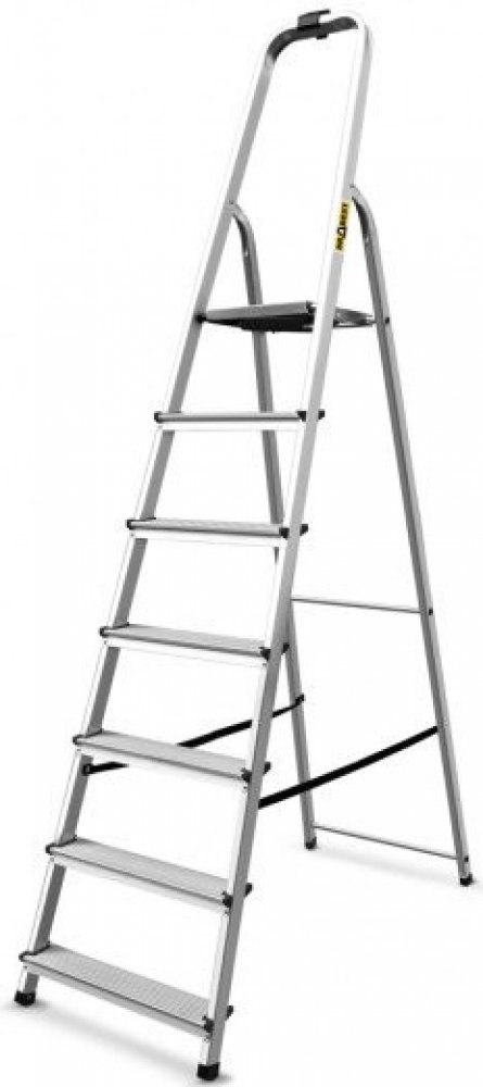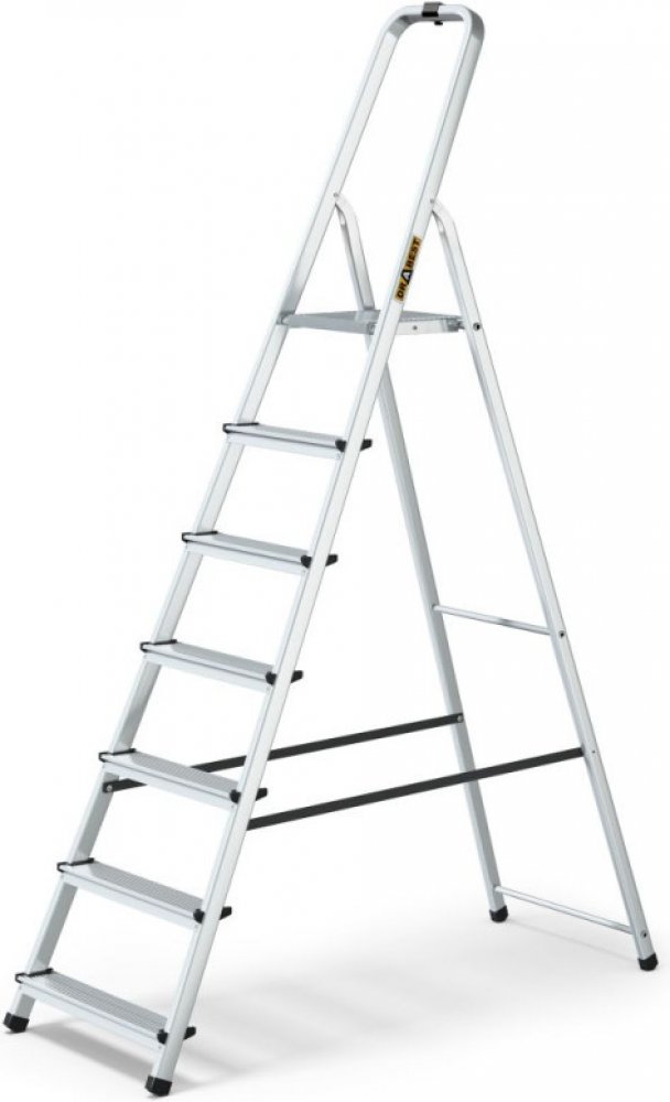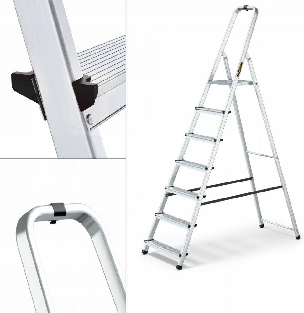 Kompaktní ocelový žebřík s extrémně odolnou konstrukcí. Použitelný do každé domácnosti, ve které bude nezbytným pomocníkem pří různých typech prácí. Zvýšená bezpečnost je zajištěna protiskluzovým systémem, jako jsou vlnité nášlapy (schody) nebo speciální plastové konce nohou. Přes použití pevného a kvalitního hliníku si žebřík zachovává svoji lehkost a jednoduchost skladování spolu s přenášením.